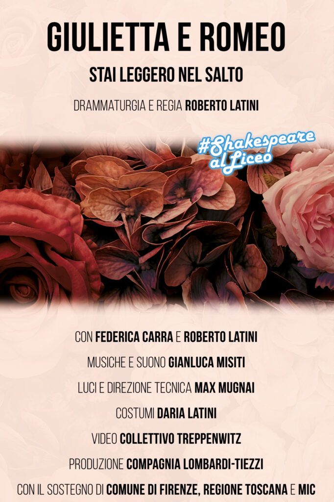 Il progetto Shakespeare al Liceo, realizzato con il contributo della Fondazione CR Firenze, si compone di due appuntamenti teatrali con gruppi di artisti prodotti dalla Compagnia Lombardi-Tiezzi che porteranno in scena due testi dell’autore inglese secondo la personale lettura artistica: Troilo e Cressida. L’Iliade raccontata da Shakespeare de I Sacchi di Sabbia e Giulietta e Romeo – Stai leggero nel salto nella regia di Roberto Latini. Due storie di giovani amori che nelle aule del liceo assumeranno nuovi e più forti significati.